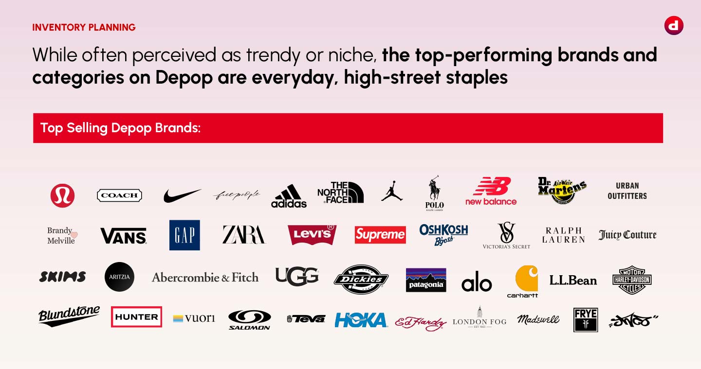 If you’re looking for a head start on your 15 listings, check out our Depop-Ready Inventory Box — a mixed assortment of men’s and women’s clothing from top-performing brands on Depop, including: Zara, Urban Outfitters (including house brands), Adidas, Gap and Lululemon.